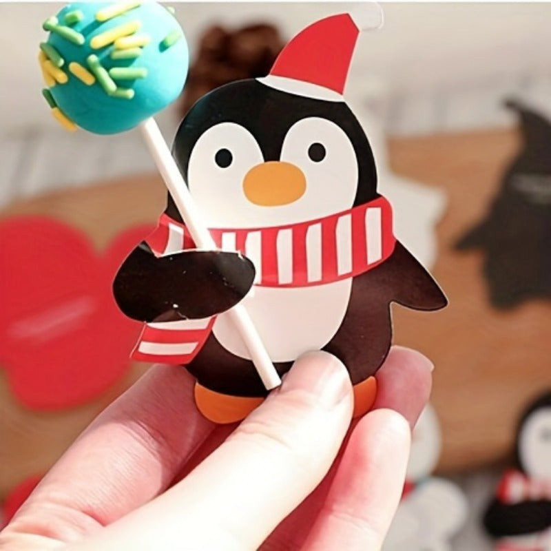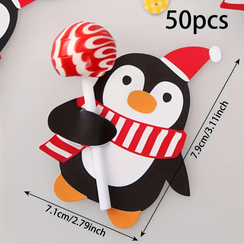 100 db-os karácsonyi nyalóka tartó kártya - Mikulás, pingvin, hóember mintákkal