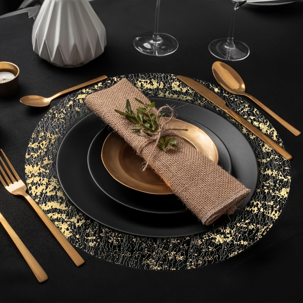 Fedezd fel az elegancia és a luxus világát a Fekete-Arany Fólia Tányéralátéttel! Ez a különleges darab nem csupán egy egyszerű alátét, hanem a stílus és a kifinomultság megtestesítője. Tökéletes választás, ha szeretnéd feldobni az étkezéseidet vagy lenyűgözni vendégeidet. Az alátét ragyogó arany színe és a fekete háttér kontrasztja azonnal magára vonzza a tekintetet, bármilyen asztalra is helyezed. A modern és klasszikus dizájn találkozása, amely minden enteriőrben megállja a helyét.