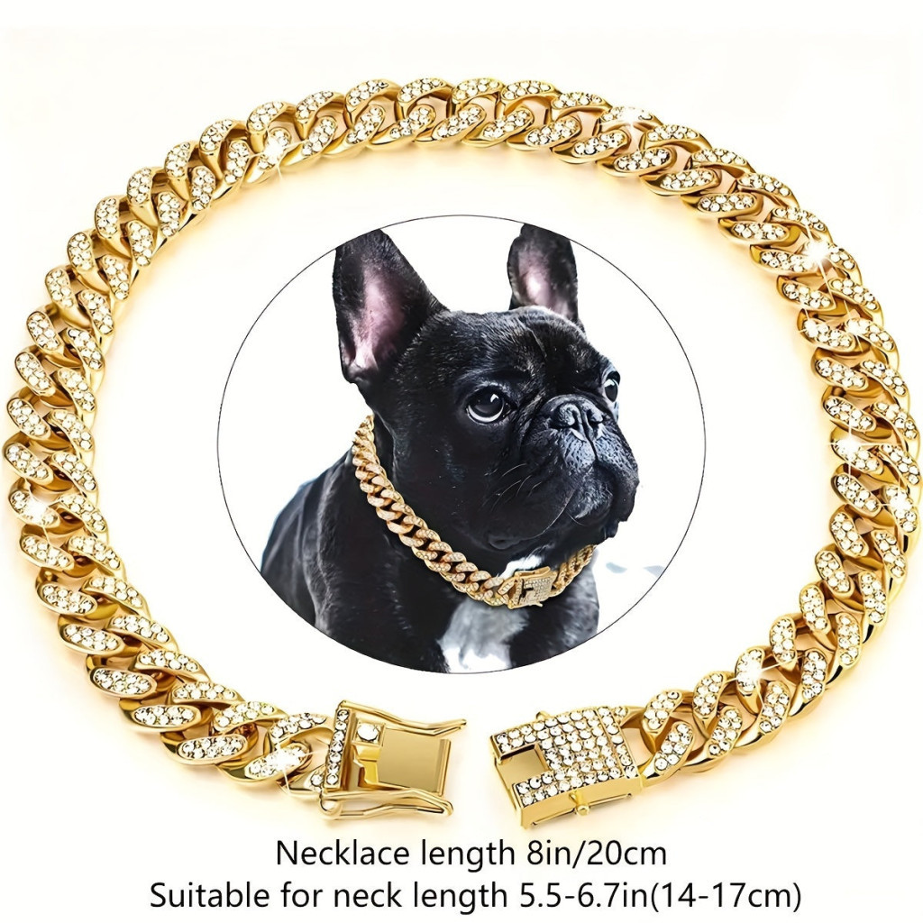 (Fényűző megjelenés) Csillogás és elegancia találkozik ebben a lenyűgöző kutya nyakláncban, amely nem csupán egy egyszerű kiegészítő, hanem a stílus és a szeretet kifejezője is. A finom kidolgozás és a magas minőségű anyagok garantálják, hogy kedvenced a figyelem középpontjába kerül. Ez a nyaklánc tökéletes választás mindennapi használatra vagy különleges alkalmakra, amikor szeretnéd, hogy kutyád is a legjobb formáját mutassa. A csillogó kövek és az elegáns dizájn biztosítják, hogy kutyád mindig divatos és elegáns megjelenést kölcsönözzön.