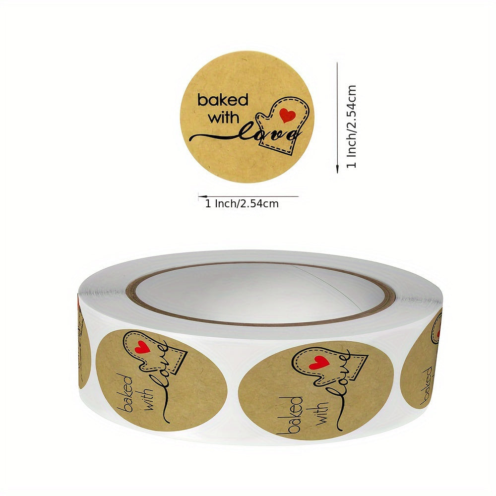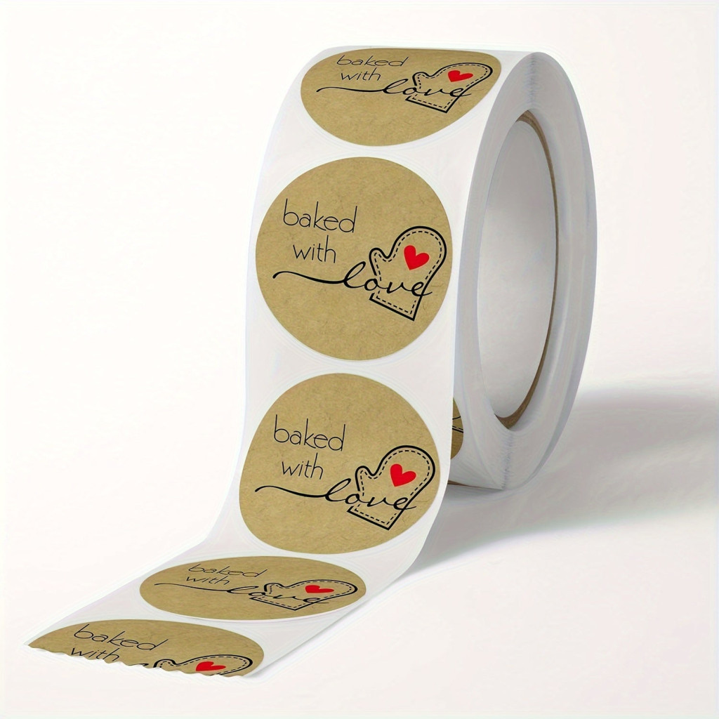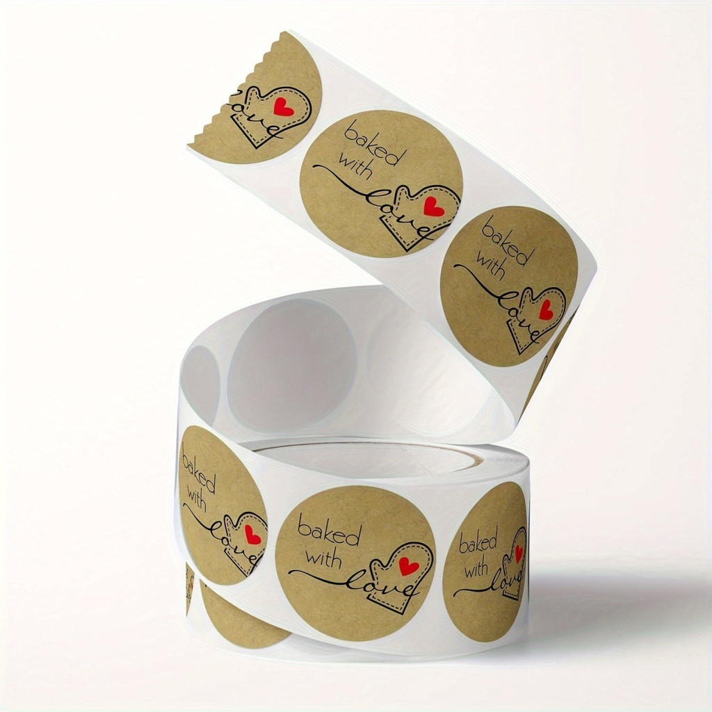 (Kialakítás) Kerek, barna matricák piros szívvel és sütőkesztyűben sült dizájnnal: Ez a dizájn egyszerre aranyos és modern, tökéletesen illik mindenféle pékáruhoz.