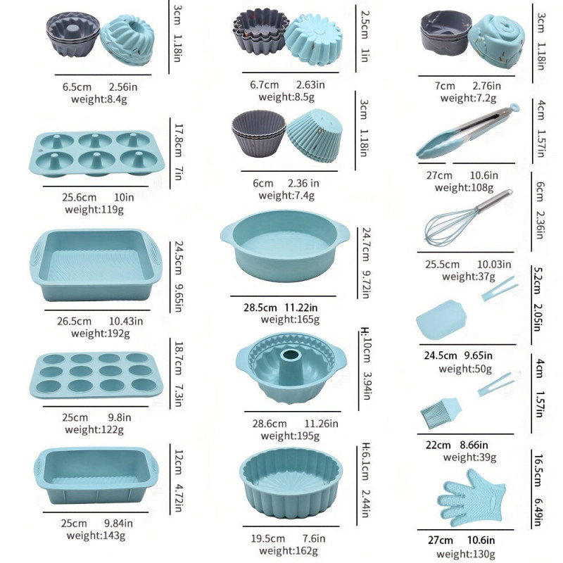 Ez a 36 db-os Szilikon sütőforma és kiegészítő szett igazi elengedhetetlen darab a konyhádban! Hidd el, ezzel az eszközzel a sütés és a süteménykészítés egy igazi játék lesz!