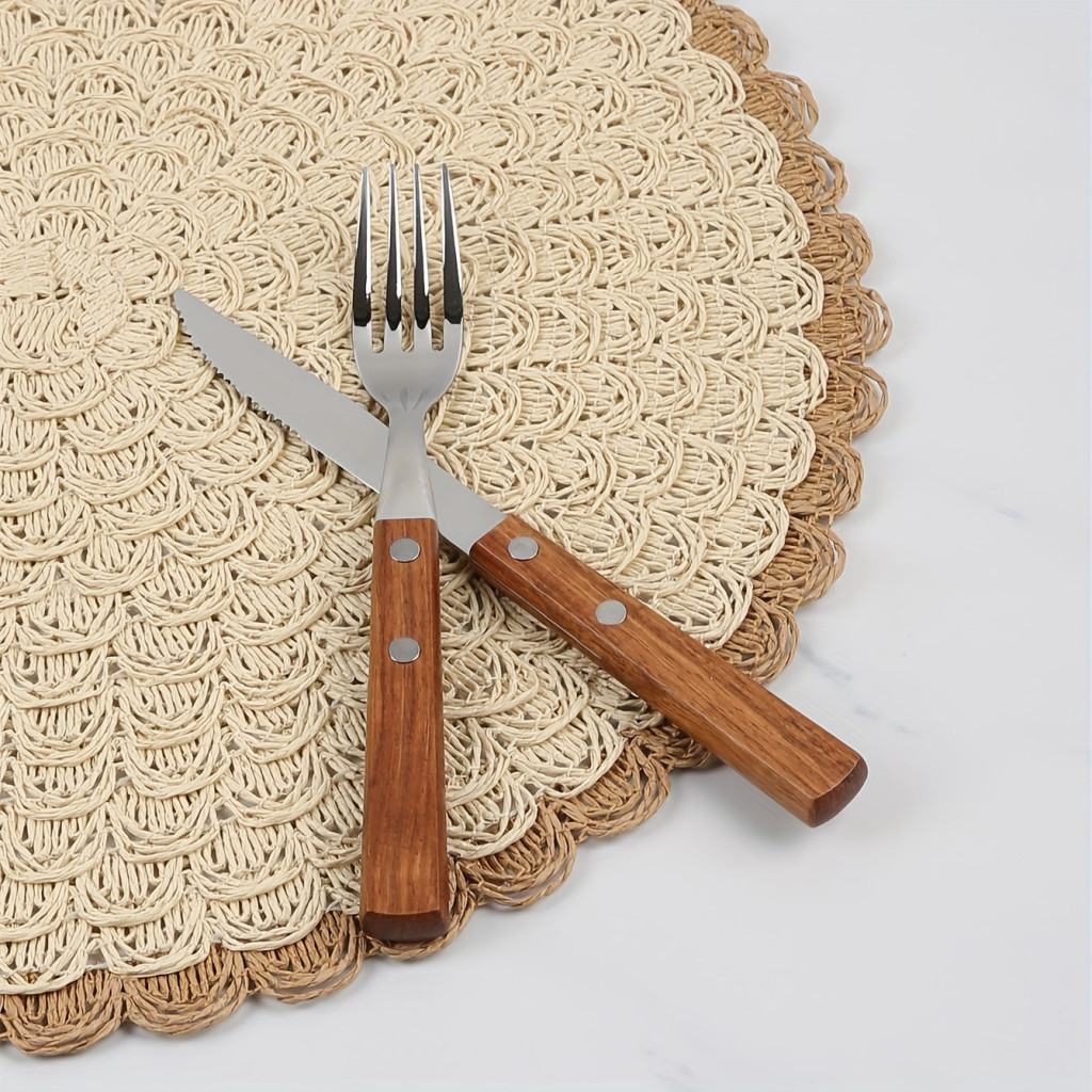 (Anyag) Természetes vászon: A tányéralátétek fenntartható, környezetbarát anyagokból készülnek, amelyek tartósságot és eleganciát biztosítanak.