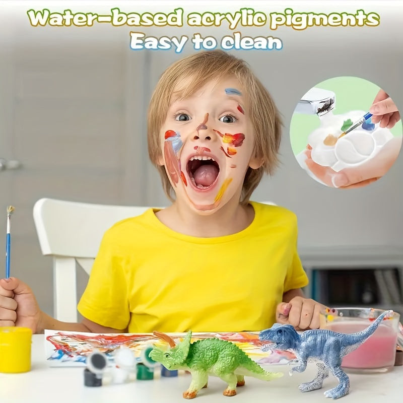 (Kreatív kifejezés) A készlet tartalmaz különböző dinoszaurusz formákat, amelyek festhetők és díszíthetők, így minden gyerek a saját ízlése szerint alkothat.