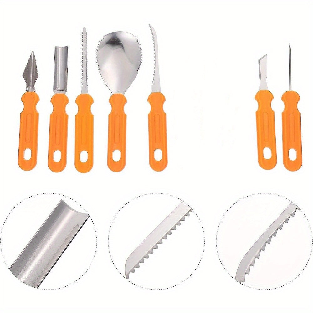 (Komplett készlet) - A 7 darabos készlet mindent tartalmaz, amire szükséged lehet: faragókések, fűrészek és egyéb kiegészítők, hogy a tökfaragás élménye teljes legyen.