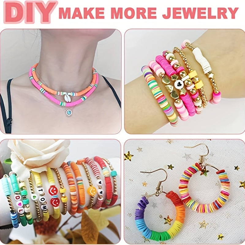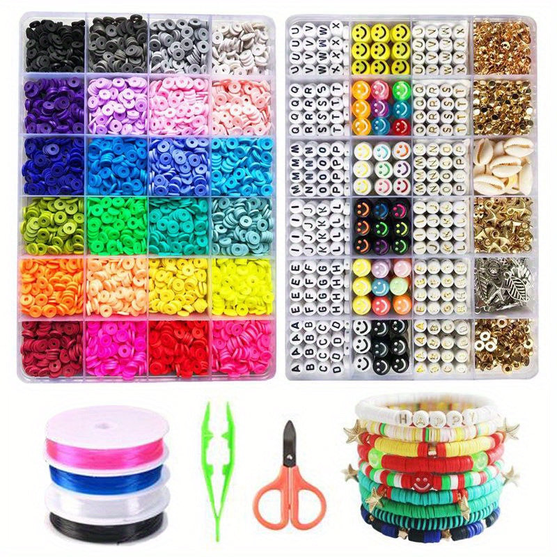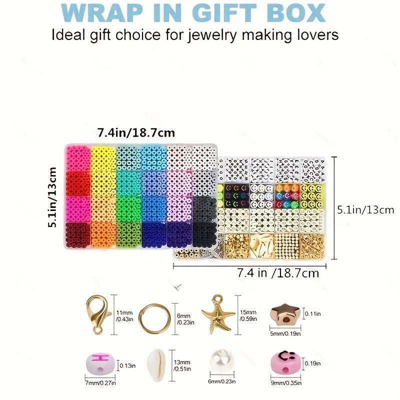 (Színes gyöngyök) A készlet 7200 darab színes gyöngyöt tartalmaz, amelyek különböző formákban és méretekben érhetők el, így végtelen lehetőséget kínálnak az egyedi karkötők készítéséhez.