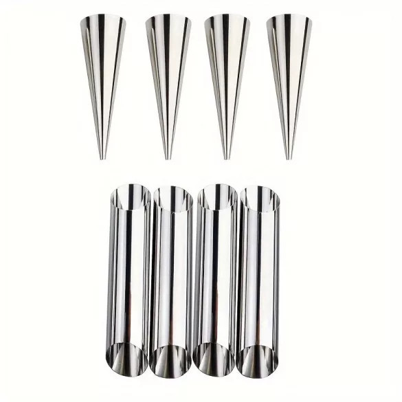 (Krémtölcsér forma) - A szettben található nyolc krémtölcsér forma különböző méretű, így változatos desszerteket készíthetsz. A tapadásmentes bevonat garantálja, hogy a sütemények könnyedén kivehetők legyenek.