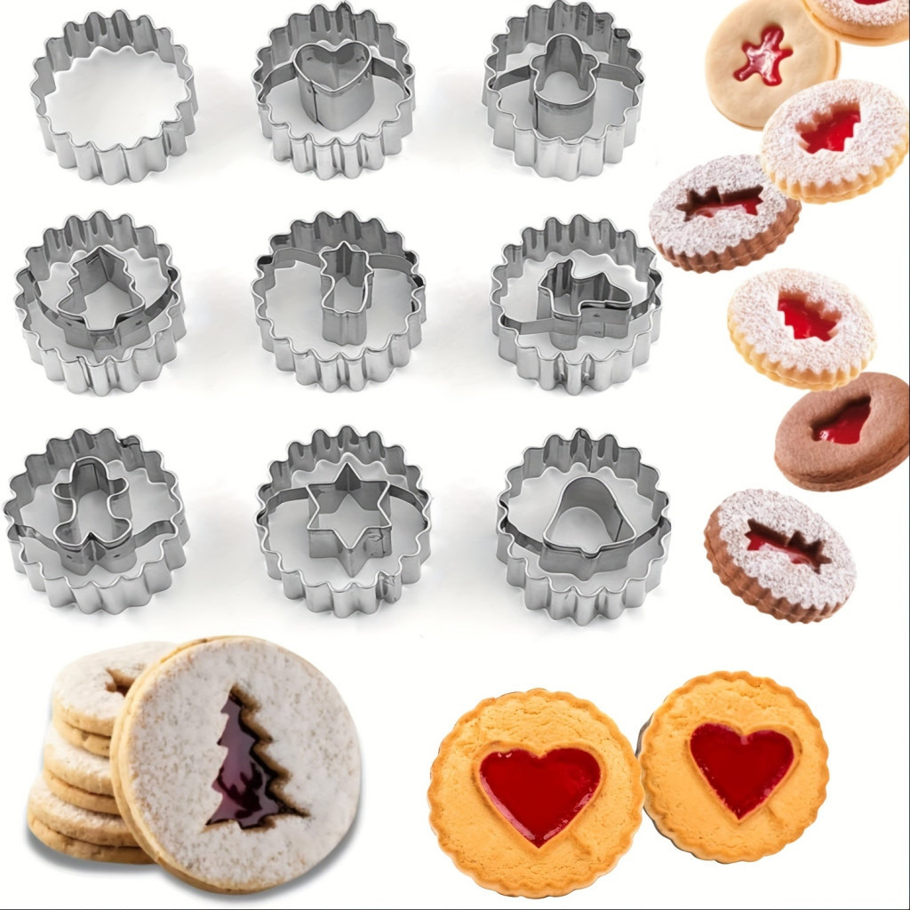 9db, Karácsonyi Linzer Sütivágók, Rozsdamentes Acél Sütivágó Készlet, Karácsonyi Kekszformák,