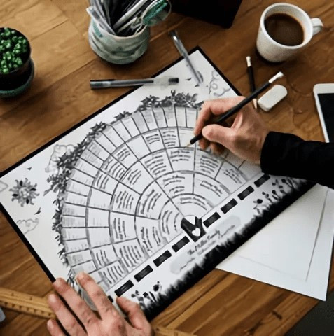 A családfa diagramot 6 generációig töltheted ki. A diagram üres helyeit kitöltheted a kézírásoddal, mely a családtagjaid neve által igazi műalkotássá válik.