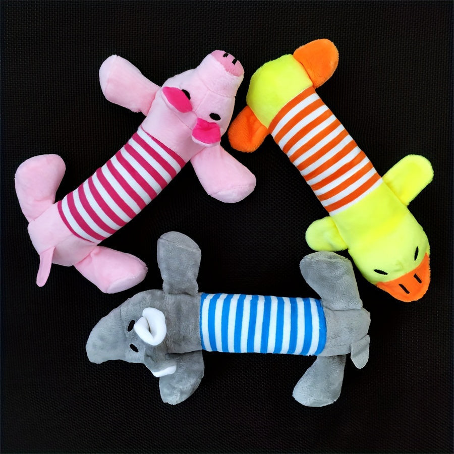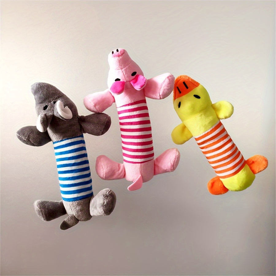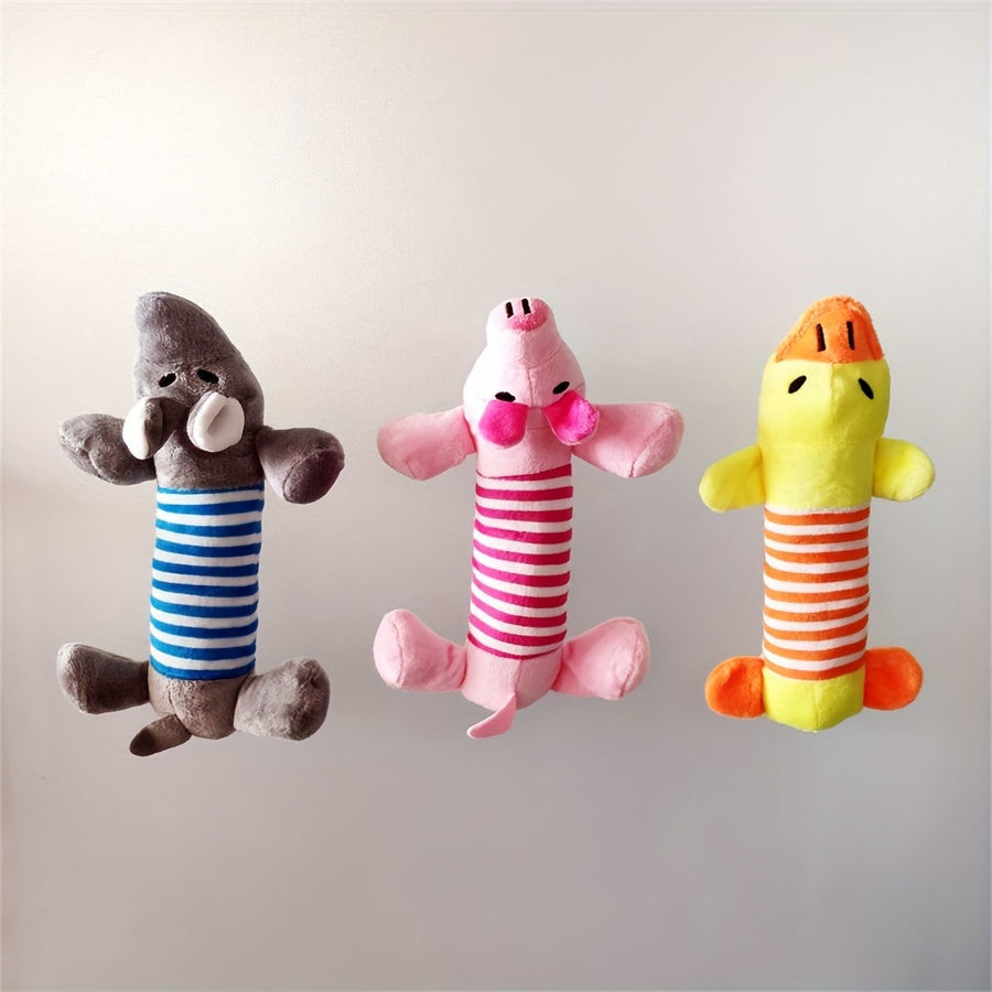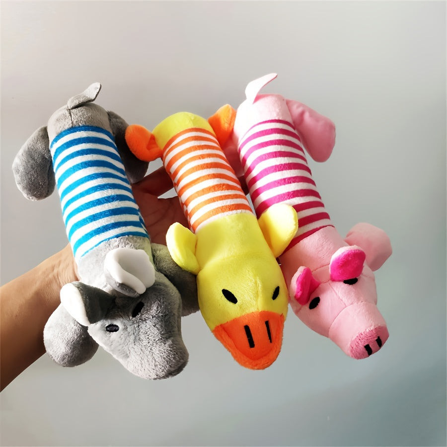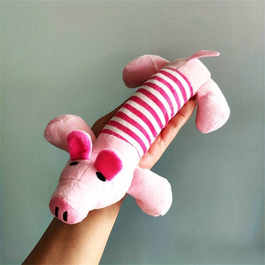 (Kutya játék) Képzeld el, ahogy a kutyád boldogan csóválja a farkát, miközben ezzel a csipogó plüss kutya játékkal játszik! Ez a puha és tartós játék tökéletes társ a mindennapi szórakozáshoz, legyen szó benti vagy kinti játékról. Az élénk színek és az aranyos dizájn garantáltan felkelti házi kedvenced figyelmét, és órákon át leköti őt. A játék csipogó funkciója különleges élményt nyújt, amely még izgalmasabbá teszi a játékidőt, és ösztönzi a kutyát az aktív mozgásra.