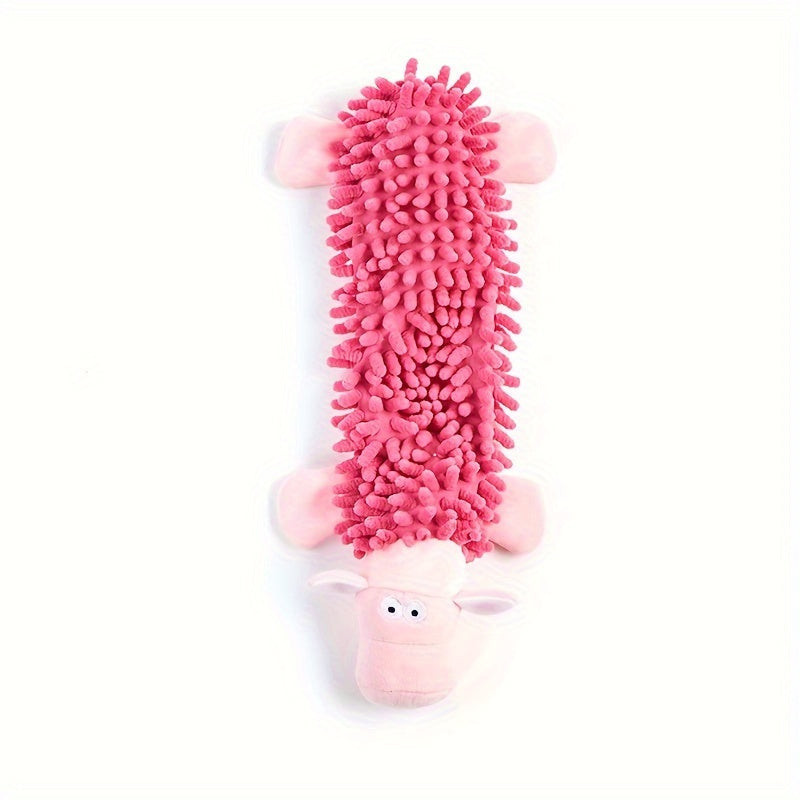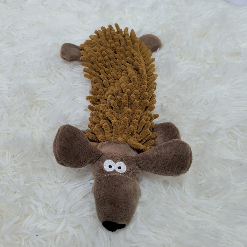 (Puha anyag) A játék puha plüss anyagból készült, amely kíméli a kutyák fogait és ínyét, miközben játszanak.