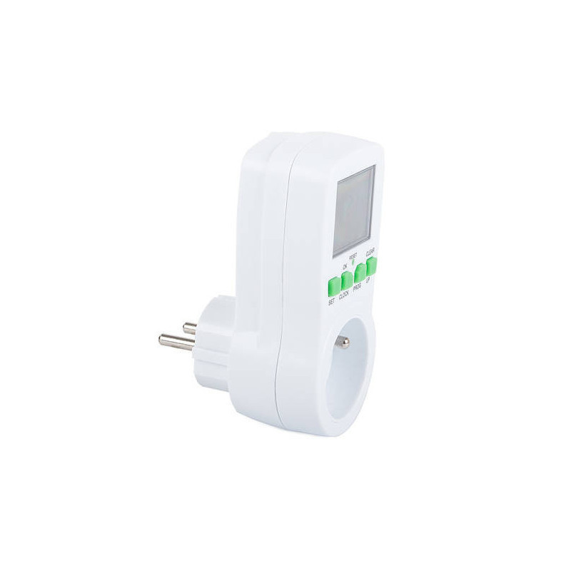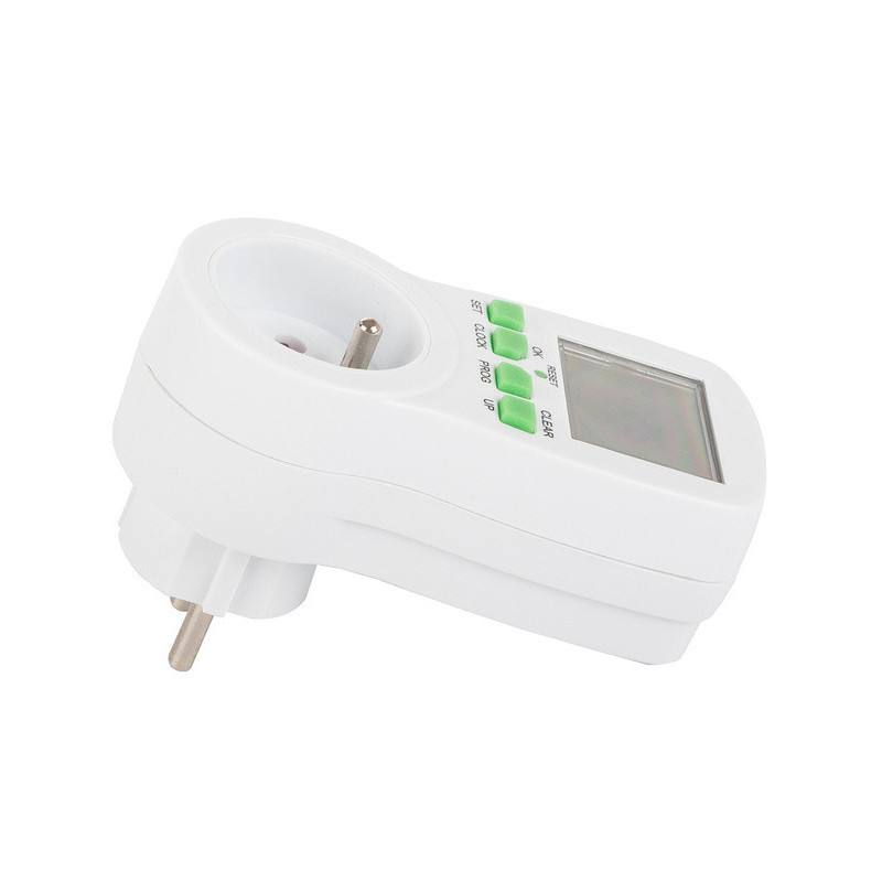 Ez a digitális időzítő kapcsoló otthoni készülékek áramellátásának vezérlésére lett tervezve. Beépített akkumulátorral rendelkezik az időzítő működtetéséhez. Az időzítő kapcsoló használható különböző készülékek automatikus be- és kikapcsolására, elektromos fűtés és szobavilágítás vezérlésére, valamint otthoni jelenlét szimulálására. Az eszköz használatával energiát lehet megtakarítani. Az időzítő nagy, könnyen olvasható LCD kapcsolóval van ellátva.
