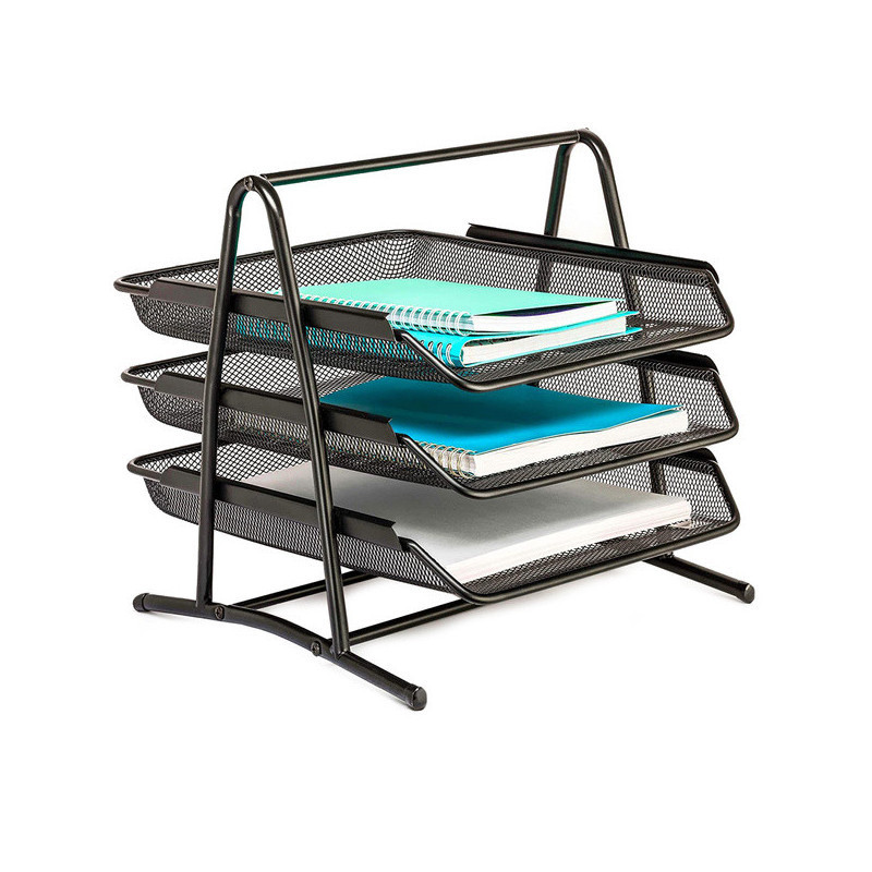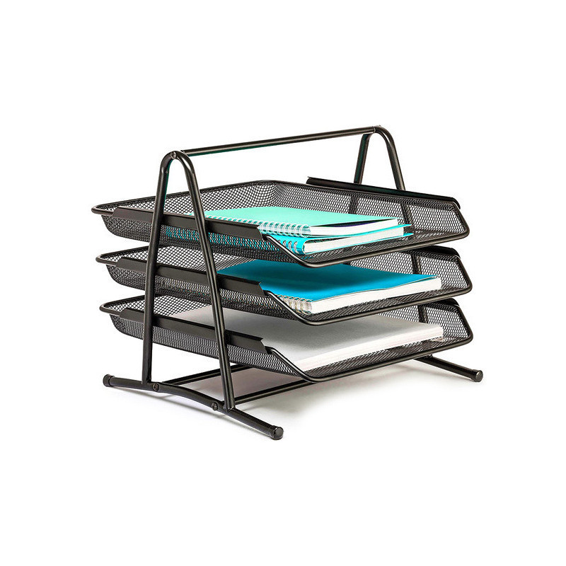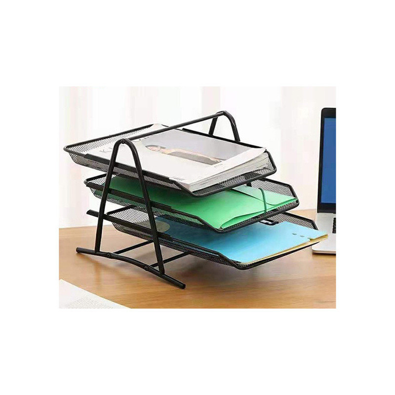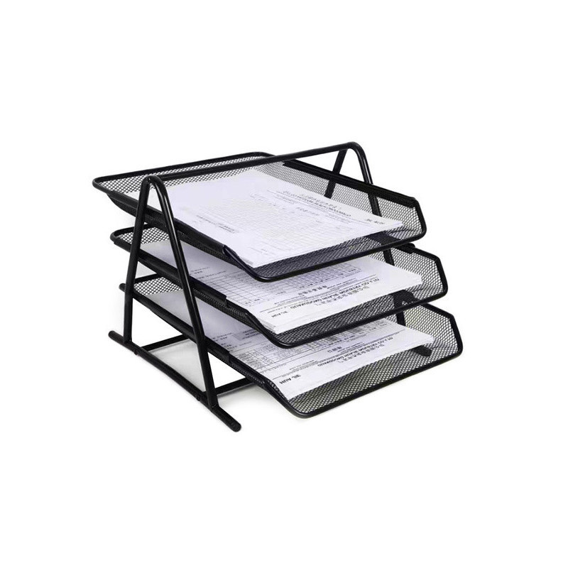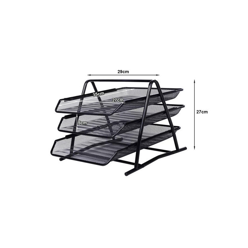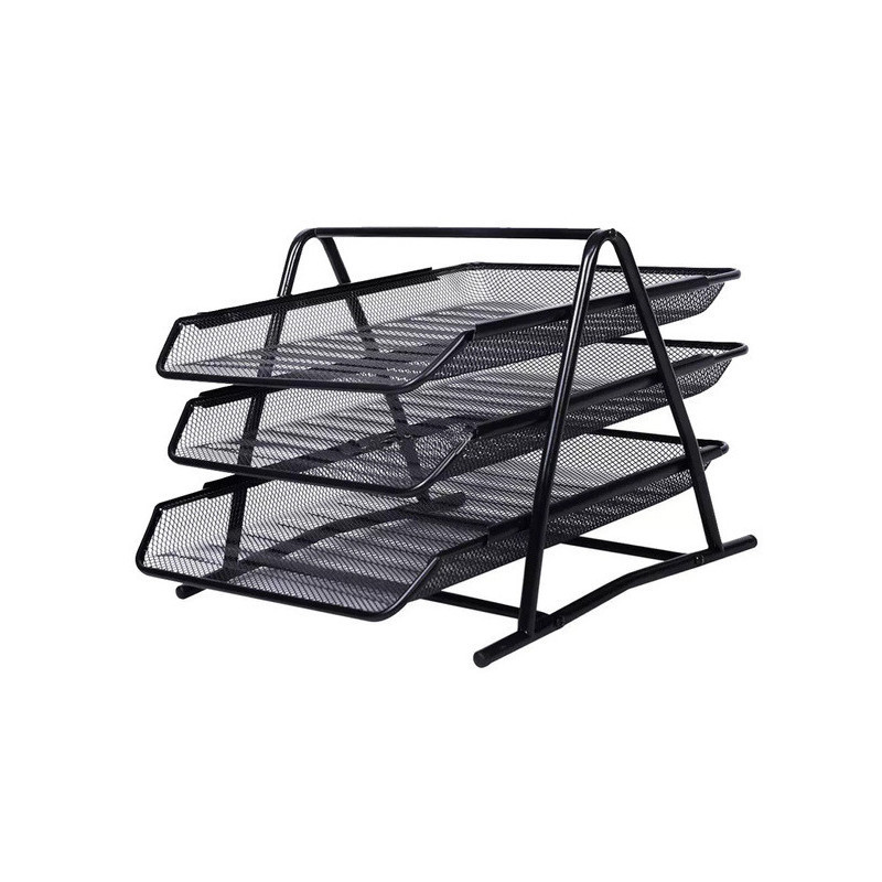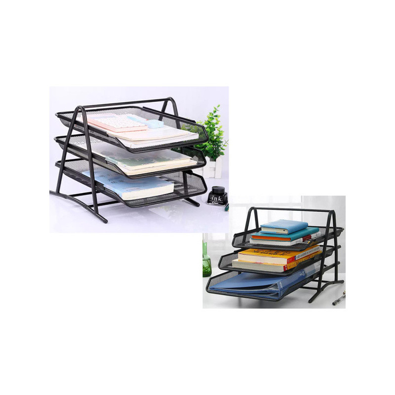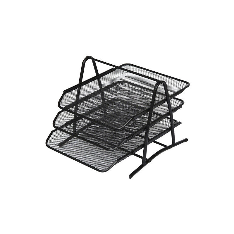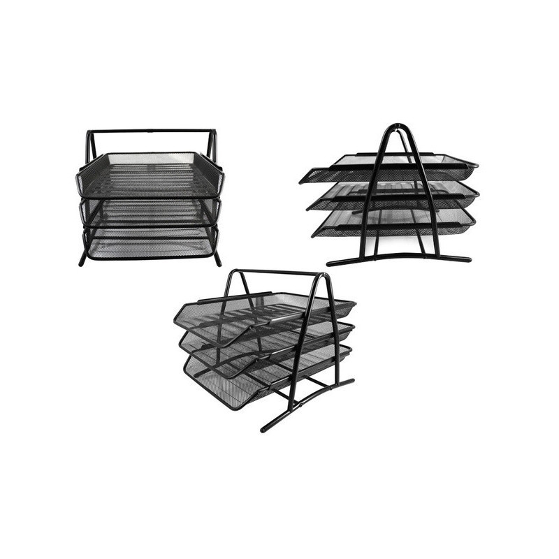 Az asztali irattartó könnyű hálós fém konstrukcióból készült, és rendben tartja az irodai dokumentumokat. Használható könyvek, iskolai jegyzetek tárolására is. Az irattartó három tágas fiókkal rendelkezik, amelyek fém vezetőkön csúsznak.