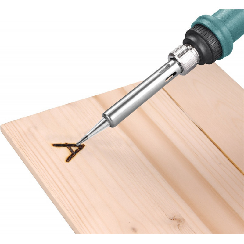 A hosszú hálózati vezetéknek. a levehető állványnak és forrasztópáka vezetékének köszönhetően nem kell a munkát az elektromos aljzathoz közel végezni.