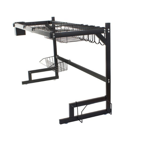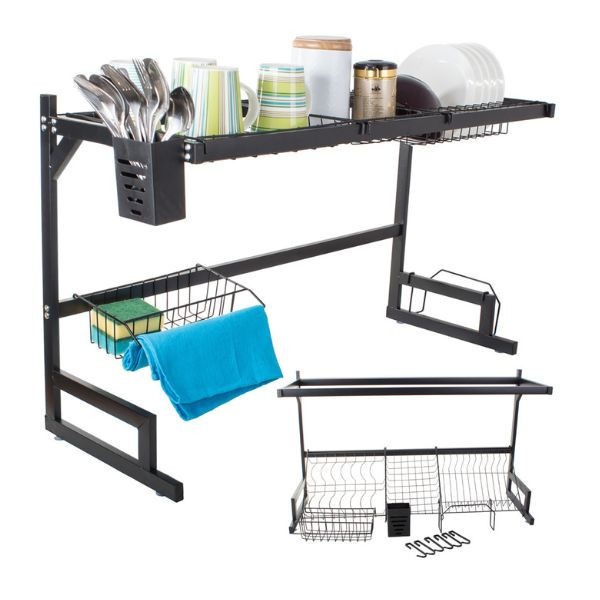 Szárítsd konyhai eszközeidet praktikus edényszárítónkkal! A felső polc alkalmas poharak, tányérok és evőeszközök lecsöpögtetésére. Az alsó tárolóban pedig elhelyezheted a mosogatószivacsot, törlőrongyot is.