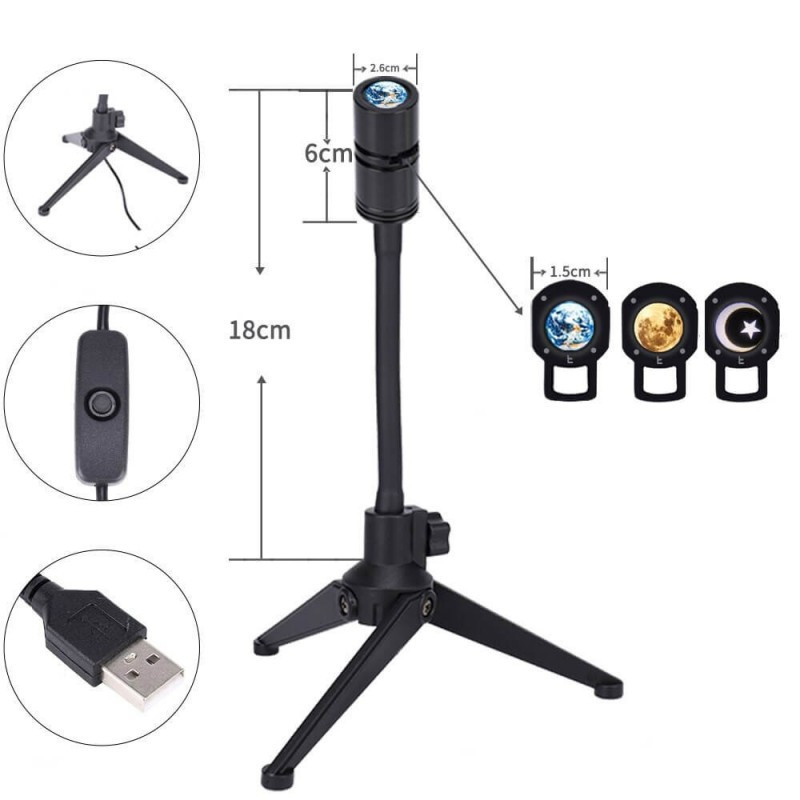 Használd korlátok nélkül! Ebben a stabil rögzítéssel rendelkező tripod, valamint a 360 fokban forgatható és mozgatható USB-vel tölthető kivetítő lesz a segítségedre.