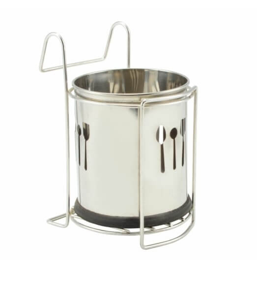 Ez az evőeszköztartó a hosszú élettartam miatt rozsdamentes acélból készült, és alul gumival van ellátva, hogy a fém tartóból ne csússzon ki. Kialakításának köszönhetően tárolhatod a pulton, vagy Neked tetszőlegesen fel is akaszthatod. Oldalt kis evőeszköz formák vannak kivágva, így akár azokat száríthatod is benne, hisz éri a levegő. Ajánlott evőeszközök, fakanalak, konyhai kiegészítők szárítására, tárolására.