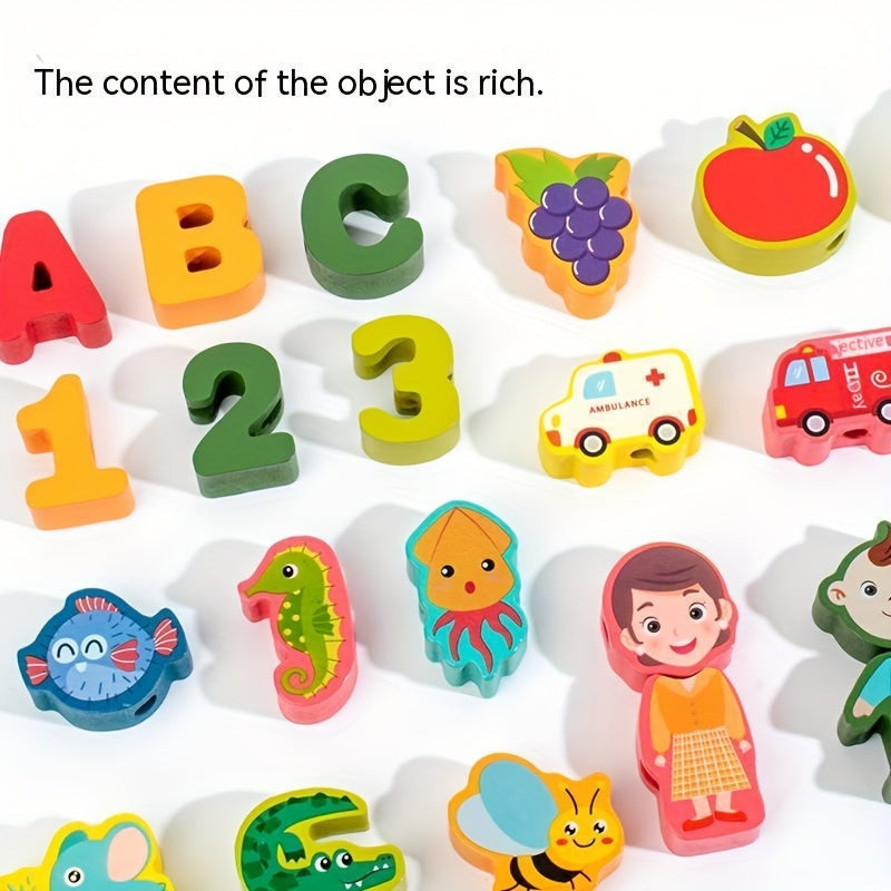 Ez az apró, gazdagon színes, nagy méretű gyöngyökkel rendelkező gyöngyfűző játék ösztönzi a gyermekek kézügyességét és kreativitását. A Fa gyöngyfűző oktatójáték fantasztikus eszköz a kicsik kéz-szem koordinációjának fejlesztésére!