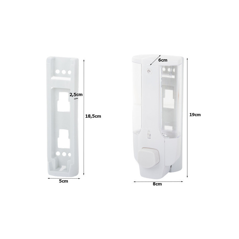 A fali szappanadagoló tökéletes bármelyik fürdőszobába, irodába vagy más nyilvános helyre. Az adagoló alkalmas folyékony szappanhoz, zuhanyzó gélhez, samponhoz és fertőtlenítő folyadékokhoz. A megfelelő magasságban a mosdópulton vagy a zuhanykabinban elhelyezve kényelmes használatot biztosít, optimális kéztérrel. Az adagoló egy gombnyomásra 1,5 ml folyadékot adagol. Az adagolónak elegáns designja van, így tökéletesen illeszkedik egy fürdőszoba vagy konyha kinézetéhez. Az adagolóhoz tartozik egy kulcs is, amellyel könnyedén feltölthetjük a folyadékot a tartályba. A 350 ml-es kapacitásnak köszönhetően hosszú ideig használható. Az adagolót a falra szereljük a szettben található elemekkel.