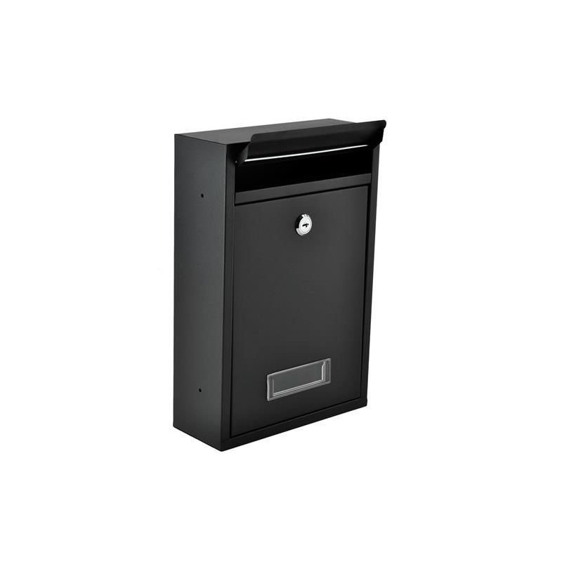 Fekete levélláda - modern design, falra szerelhető, postafiók, levelezőláda, kültéri, beltéri, alumínium, csomagküldés