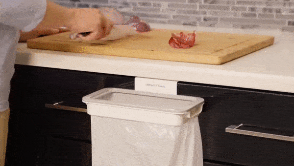 Főzni készülsz? Akasztd fel a konyhaszekrényedre a szemeteszsáktartót és seperd bele a főzőcskézés közben keletkezett hulladékot, mint a levágott zöldségdarabokat vagy tojáshéjat. Így könnyedén tisztántarthatod konyhapultodat munka közben is fáradozás nélkül.