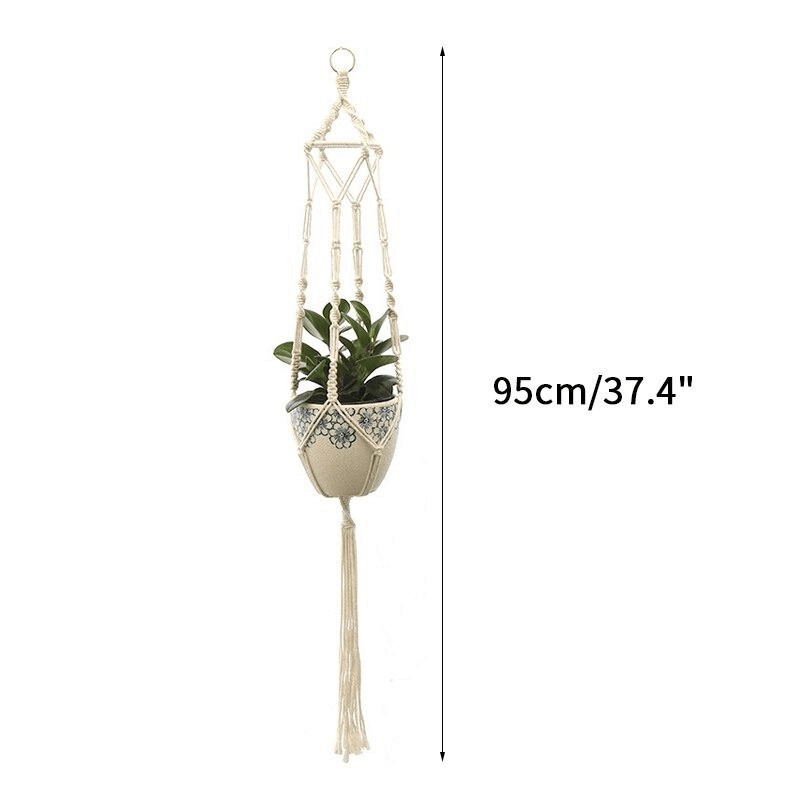 A függő virágtartók makramé, azaz csomózó technikával készültek, így látványos és egyedi kinézete van minden egyes darabnak.