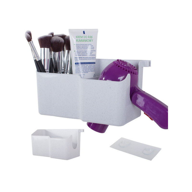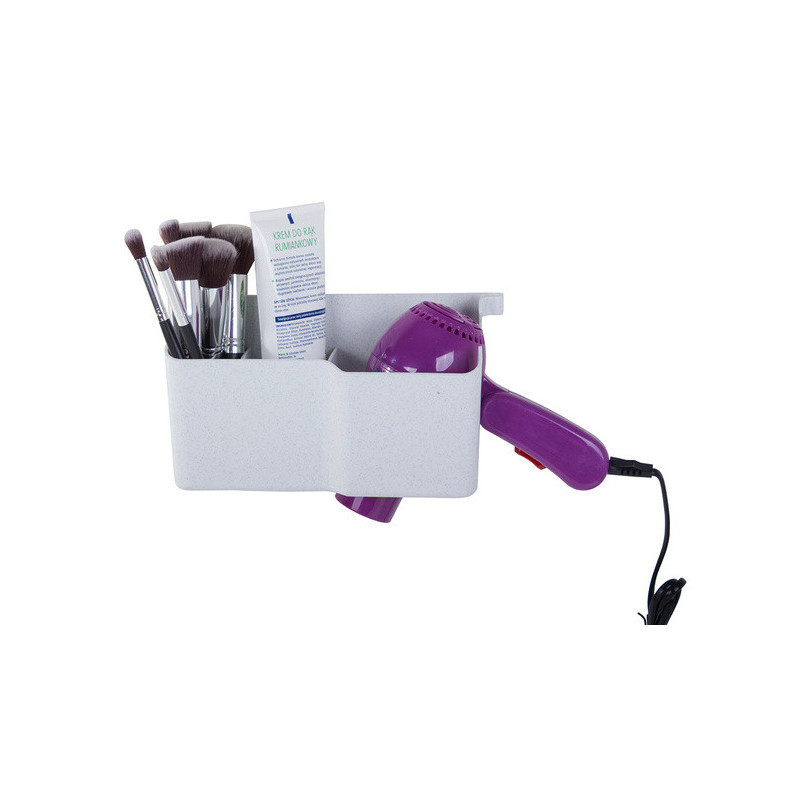 A fali hajszárító tartóval helyet takaríthatsz meg a fürdőszobádban. Ez a tartó kábel tartóval van felszerelve, 3 kiegészítő rekeszt különféle kozmetikumok vagy kiegészítők számára, valamint 2 további kis akasztót, például hajgumik vagy egy flanelle számára. A tartó alján lévő nagy lyuknak köszönhetően könnyen illeszkedik a legtöbb hajszárítóhoz.