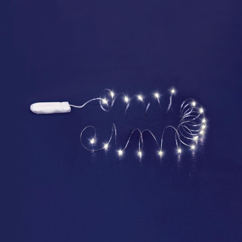 Ez a beltéri fényfüzér 20 darab hidegfehér, állófényű micro-LED-del varázsolja el szobáját.
