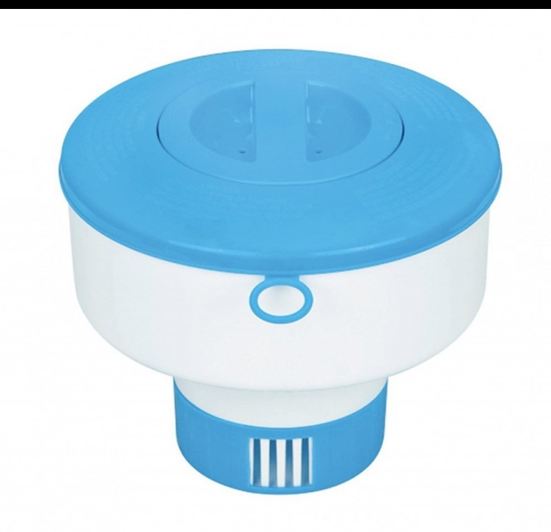 A Maxi vegyszer adagolóba 7,6 cm-es klór és bróm tablettákat tudsz belehelyezni a sapka elcsavarása után. Szabályzóval ellátott, így állítható az oldódási idő. Tartós, strapabíró polipropilén anyagból készült. Minden INTEX medencéhez ideális.