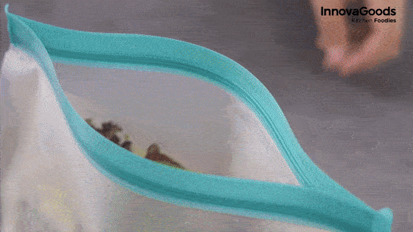 Az InnovaGoods hermetikusan záródó ételtartó zacskói kiválóan alkalmasak minden ételhez, hiszen megőrzik az élelmiszereket a hűtőszekrényben vagy a fagyasztóban. Használhatod uzsonnás zacskónak az iskolába, munkahelyre, edzőterembe vagy kirándulásra.