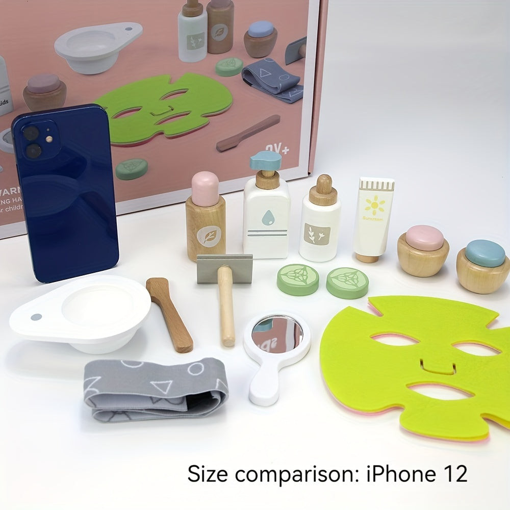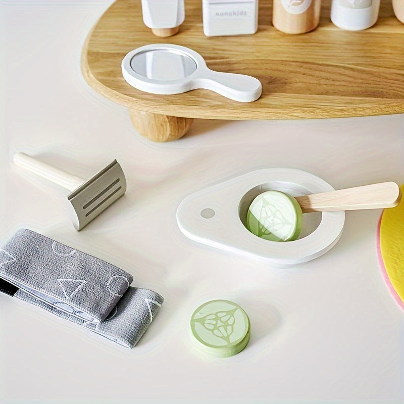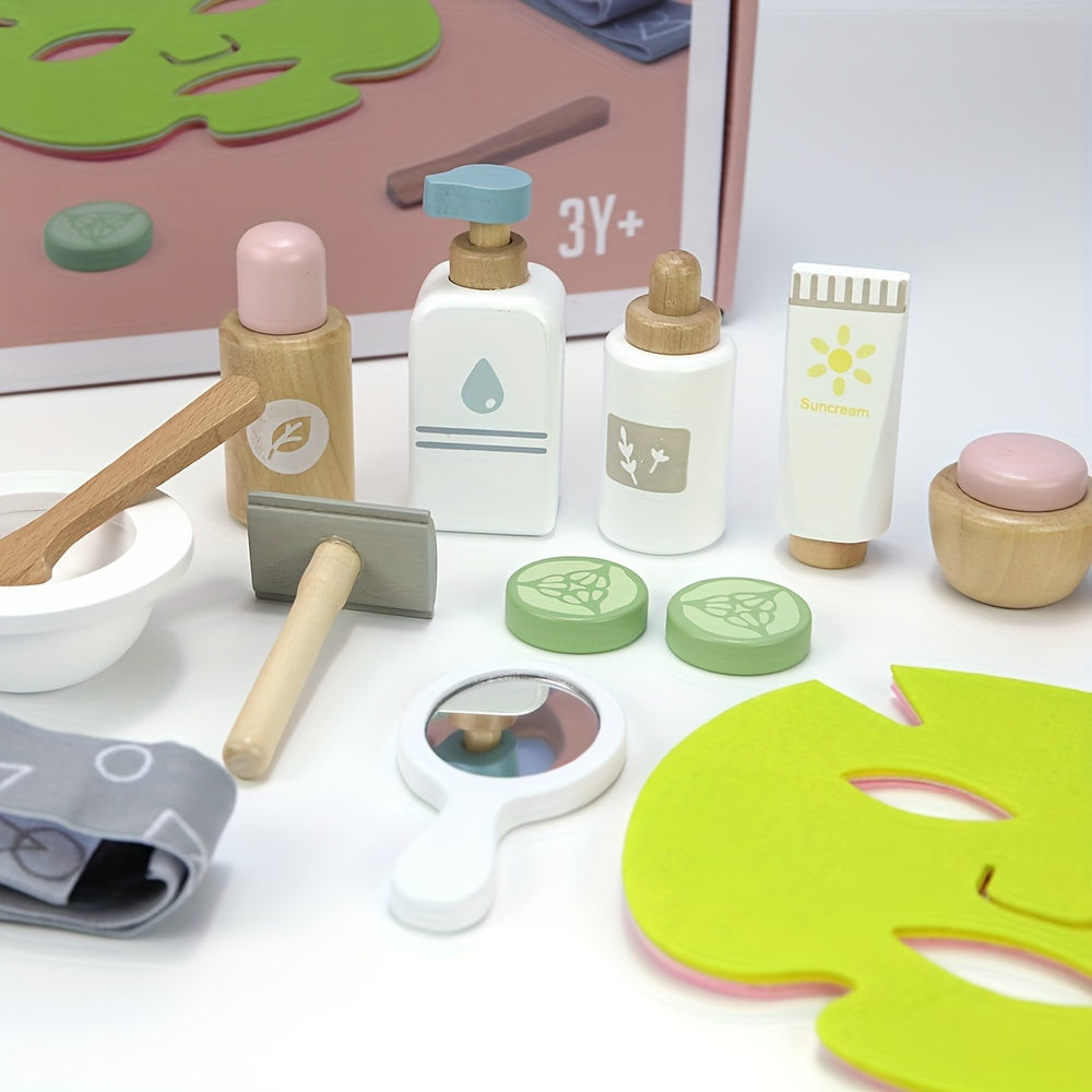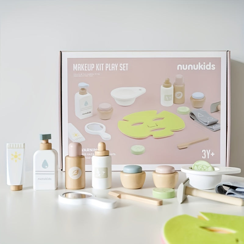 (Kreatív játék) Fából készült sminktermékek és bőrápoló eszközök, amelyek valósághű megjelenést biztosítanak.