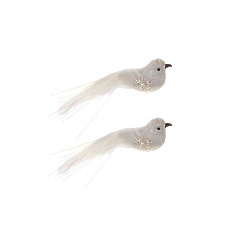 Fedezd fel a két fehér polisztirol madár báját, amelyek kecsesen és könnyedén díszítik a teret, miközben a finom glitter ragyogást és eleganciát ad nekik. Ezek a bájos madarak praktikus csipesszel vannak felszerelve, hogy egyszerűen rögzíthesd őket bárhová.