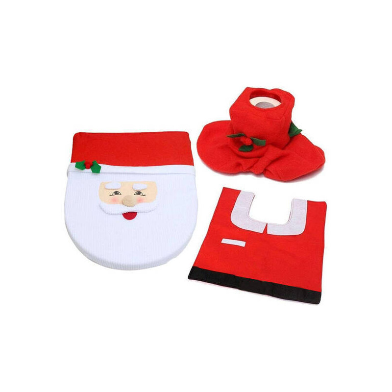 A cuki Karácsonyi fürdőszoba készlet puha anyagból készült, tökéletes kiegészítő bármelyik otthonba. Ez a készlet nemcsak egy praktikus fürdőszobai kiegészítő, hanem egy darab Karácsonyi varázslat a mindennapi használatra. A puha anyagú WC ülőke borítója Santa mosolygó arcával fantasztikus fürdőszobai dekoráció lesz. Az univerzális méretű tok, elasztikus pánttal készült, illeszkedik a legtöbb WC ülőkéhez. A szőnyeg - Santa ruhája, melegen tartja a lábaidat. A szőnyeg alján csúszásmentes bevonattal van ellátva, hogy megakadályozza a csúszást a csúszós csempéken. A papír vagy zsebkendők elhelyezésére szolgáló Flushcase.