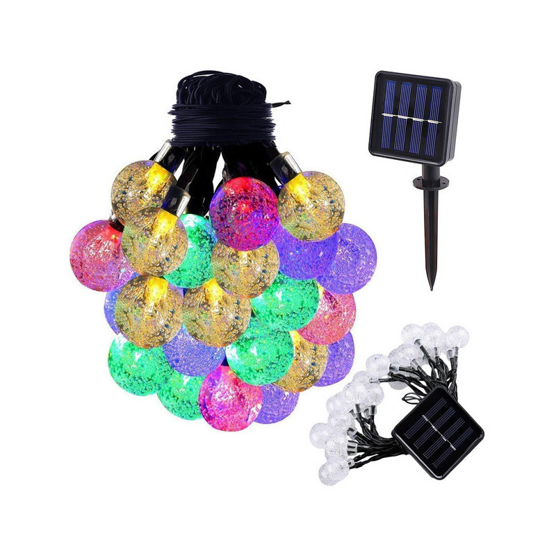 Kerti girland fények 20 LED napelemes többszínű - kerti dekoráció, hangulatfény, terasz világítás