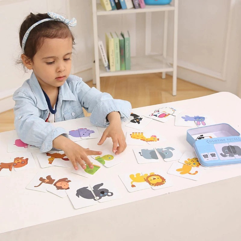 A játék célja, hogy gyermeked megtalálja minden kártya párját és kirakja belőle a megfelelő ábrát.
