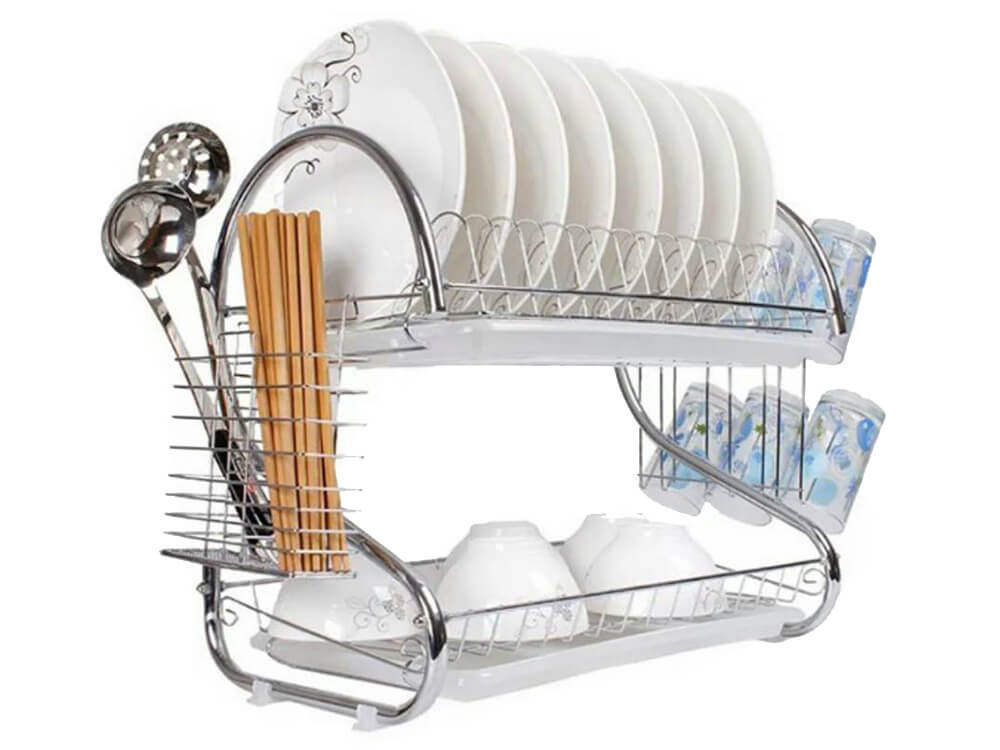 Ez az Edényszárító megoldja ezt a problémádat! A szárítóba minden elmosott tányér elfog férni, és az evőeszközöknek külön kialakított helyük van. A poharak miatt sem kell aggódnod, hisz akár alul is elférnek, illetve a 6 darab pohárakasztóra is teheted őket. A felső szinten akár 12 tányér is elfér. A szárító alatt található tálca felfogja a lecsepegett vizet, így nem fogod szétáztatni a konyhát sem!