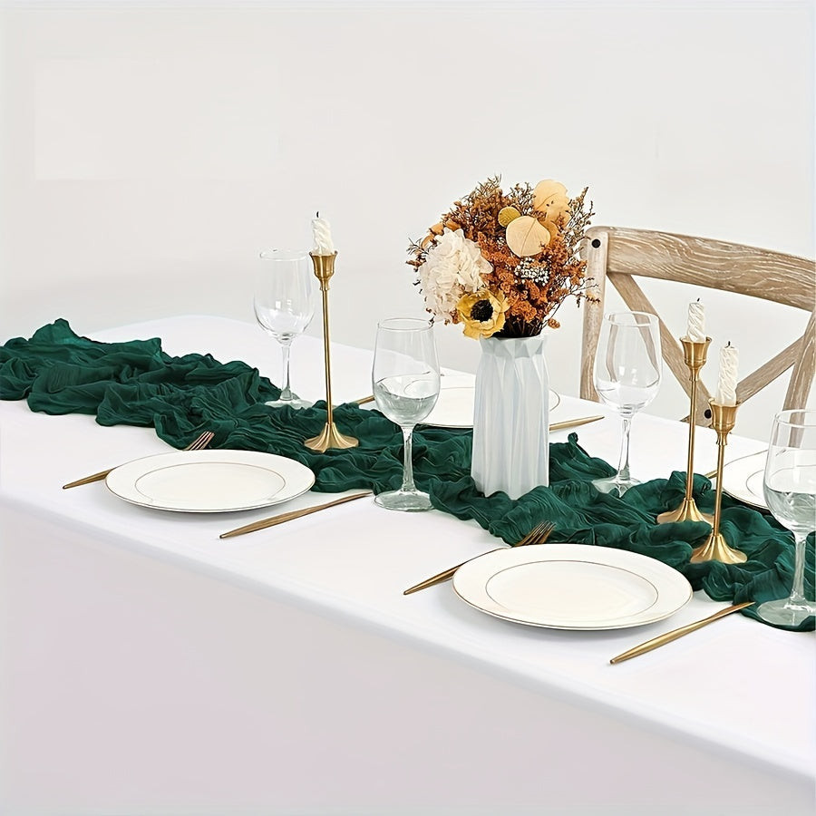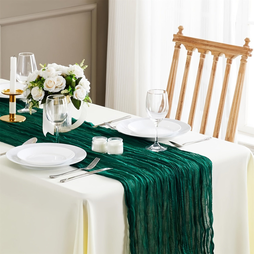 Fedezd fel a luxus és elegancia új dimenzióját a smaragdzöld sajtkendő asztalfutóval! Ez a lenyűgöző asztalfutó a kifinomultság és a stílus megtestesítője, amely bármely étkezőt azonnal átalakít. A smaragdzöld árnyalat vibráló és frissítő, tökéletesen illeszkedik minden enteriőrbe, legyen az modern vagy klasszikus. A finom szövésű anyag tapintása puha és selymes, így nemcsak látványra, hanem érintésre is különleges élményt nyújt.