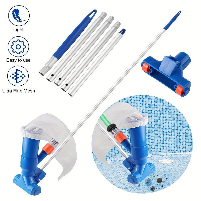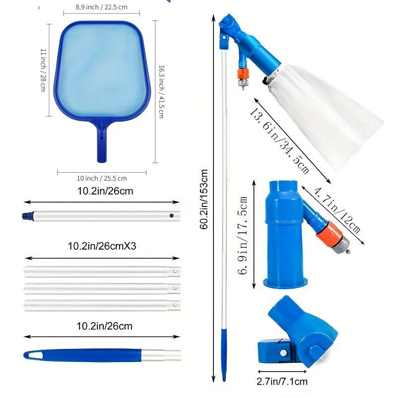 Ismerd meg ezt a Medence takarító készletet! Ez a mini porszívó készlet ideális az úszómedence vagy a spa medence könnyű tisztításához. A medence porszívó fej és a manuális halászhálós eszköz könnyedén eltávolítja a medencében úszó szennyeződéseket. A kék szín friss és modern megjelenést kölcsönöz a porszívónak, amely ideális választás a medence tisztántartásához.