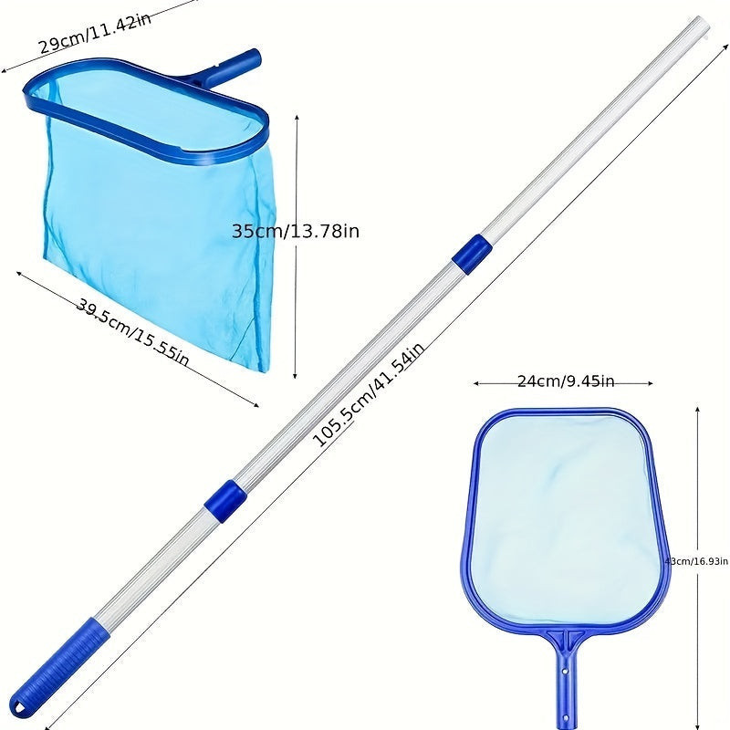 Ez a medencetisztító készlet mindent tartalmaz, amire csak szükséged lehet a víz kristálytisztán tartásához! ️ A szett tartalmaz két darab szkimmerhálót, amely ideális a levelek és más szennyeződések gyors és hatékony eltávolításához. Az alumínium teleszkópos rúd segítségével könnyedén elérheted a medence minden pontját, így a tisztítás könnyebb és gyorsabb lesz.