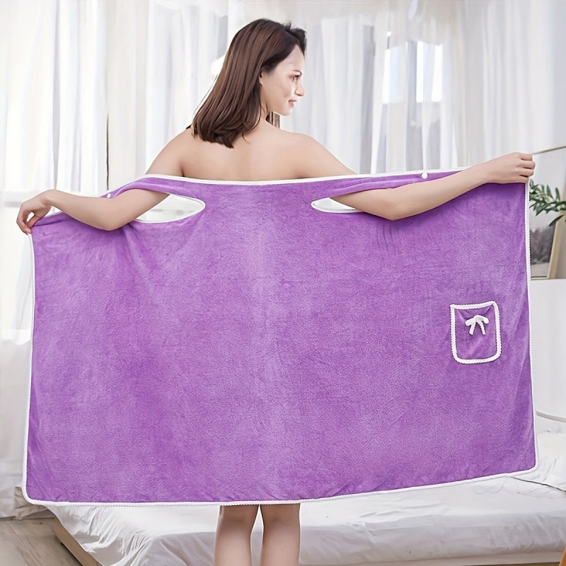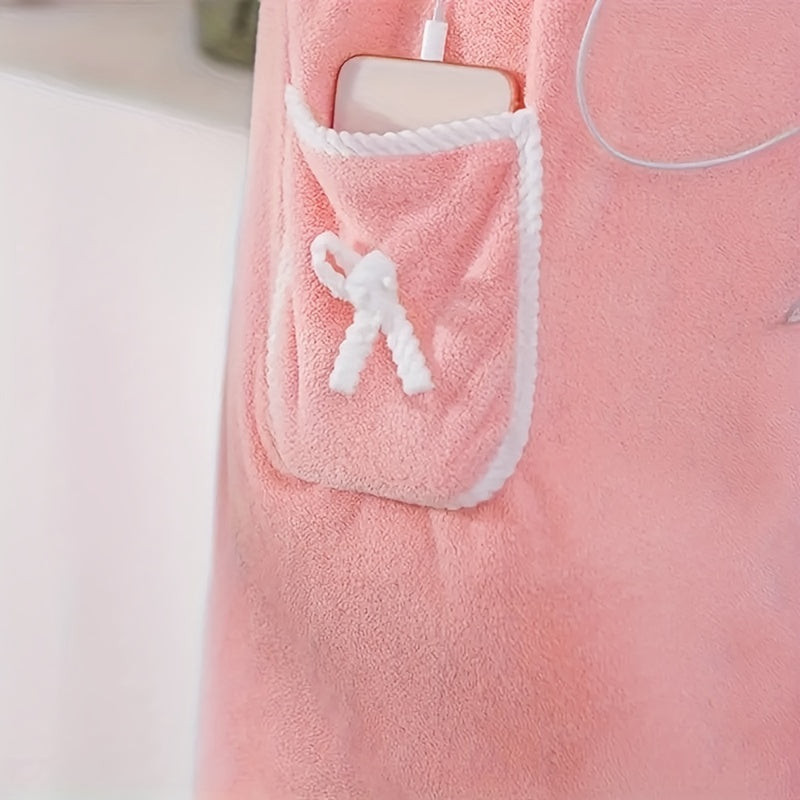 Ez a Mikroszálas felvehető női törölköző, zsebbel egy igazi cuki fürdőszoba kiegészítő, ami minden lány gardróbjában ott a helye! Ez a puha zuhanyköntös tökéletes otthonra vagy utazásra is, mert megkönnyíti a fürdést és kényelmes viseletet biztosít. És még zsebek is vannak benne, úgyhogy a telefonod vagy más apróságaid is mindig kéznél lesznek!