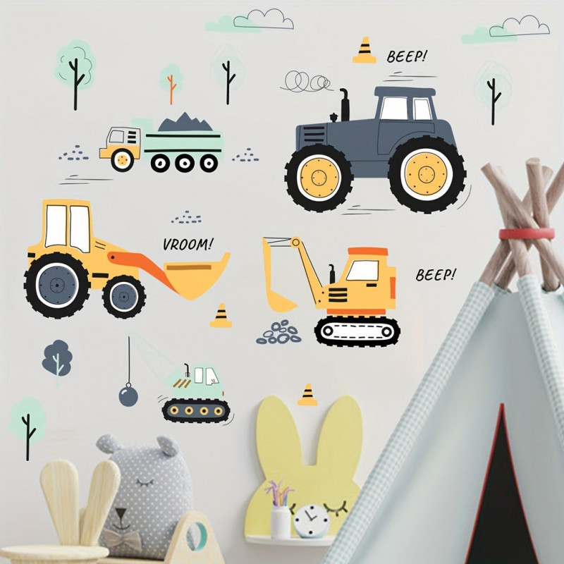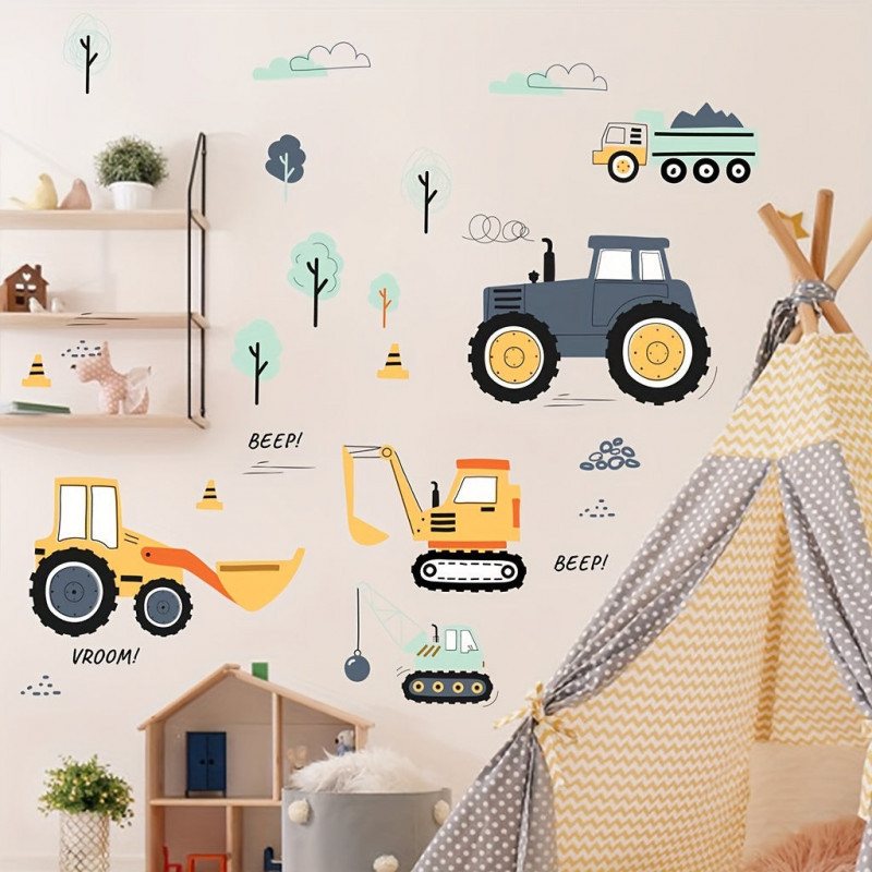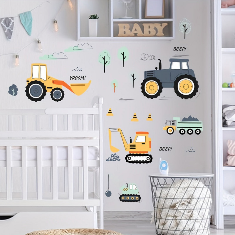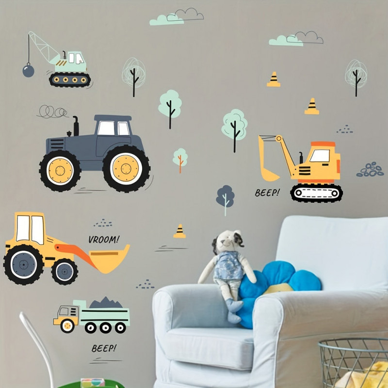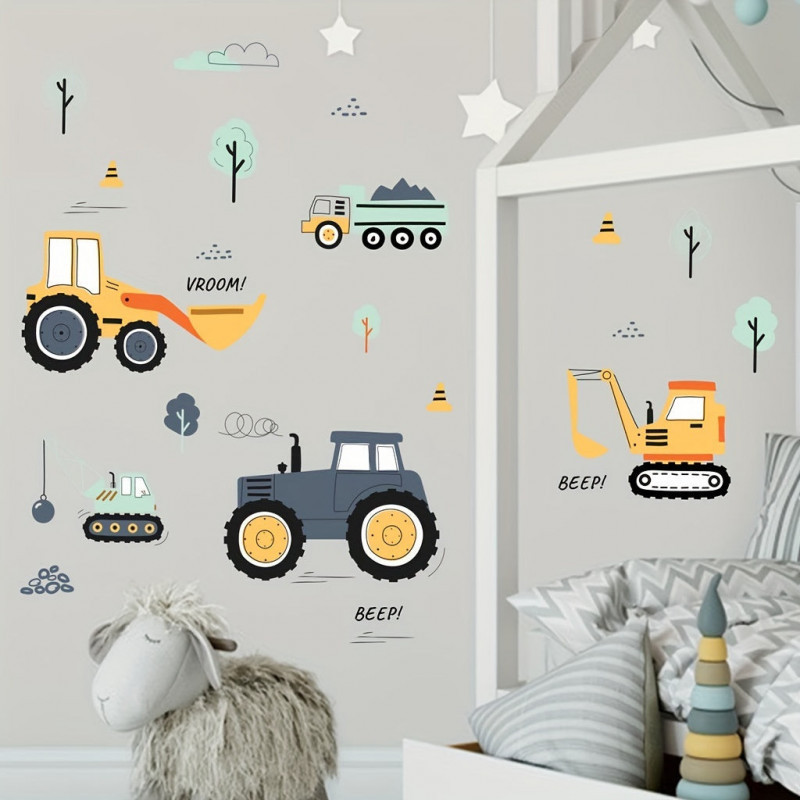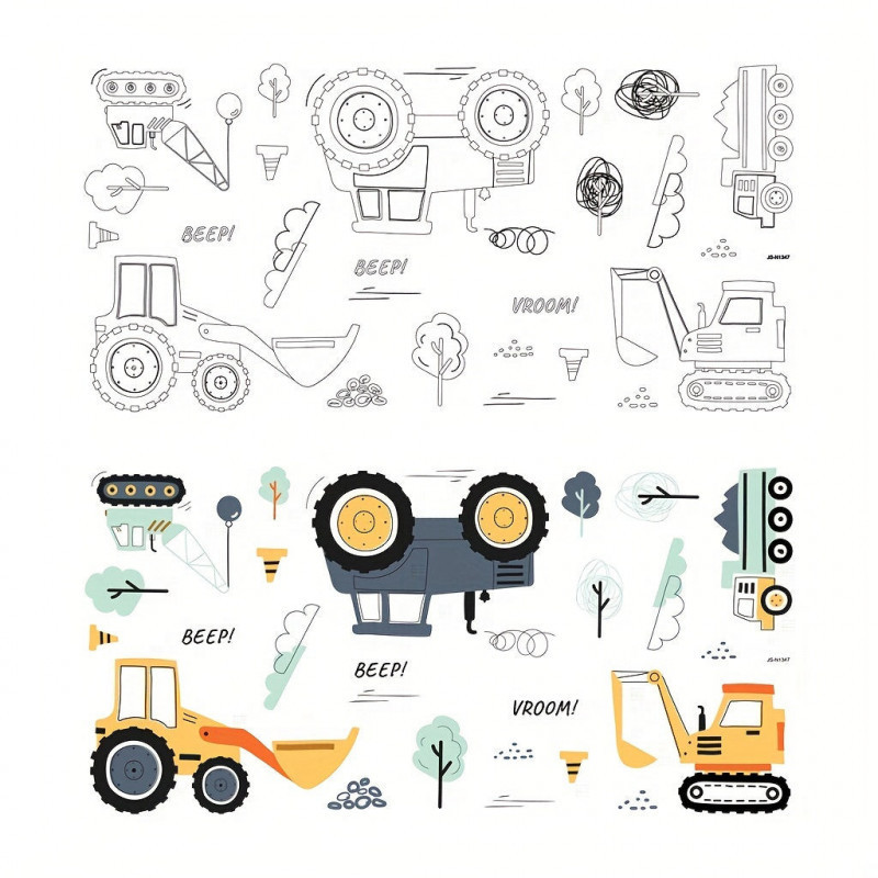 - Fantáziadús minták: A matricák játékos és színes mintázattal rendelkeznek, amelyek a gyermekek képzelőerejét és kreativitását ösztönzik. A kis munkagépek életre kelnek a szoba falán!