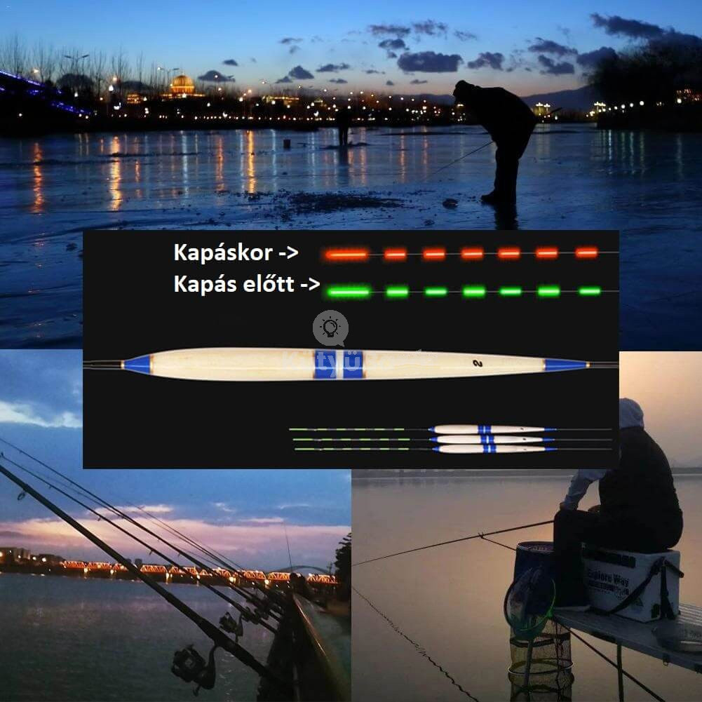 Ha a hal ráharap a horogra, akkor a kütyü színe megváltozik, zöldről pirosra. A LED-es fénye köszönhetően, még rossz látási viszonyok között is látni fogod. A megváltozott szín jelzi neked, hogy kapásod van, és a hal csak arra vár, hogy kifogd! Ez óriási előnye a hagyományos úszókkal szemben, amely csak egyszínű fényjelzést tzd mutatni neked!