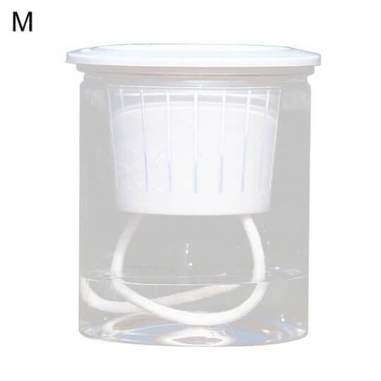Csak öntsd a tartályba a vizet majd fűzd át a pamutkötelet az itt található lyukakon. Ezt követően nincs is semmi más dolgod, mert a növények a kötélen keresztül tudják magukba szívni az éltető folyadékot.