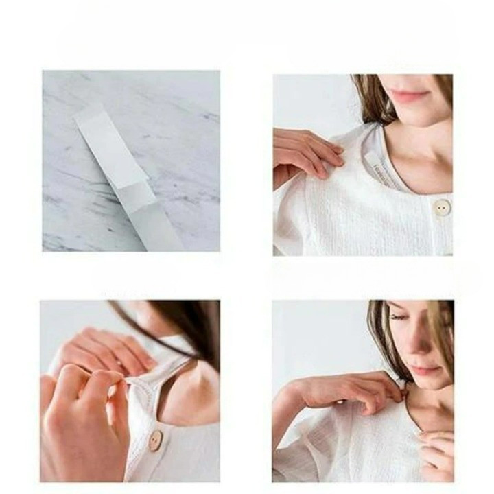 Ezekre a helyzetekre nyújt praktikus és gyors megoldást az öntapadós ruhafixer szalag, melyet akár táskádba rejtve is magadnál tarthatsz! A kétoldalú ragasztószalag egyszerre tapad bőrödhöz és ruhaneműdhöz, láthatatlan kialakításának köszönhetően észrevétlenül beleolvad öltözékedbe.
