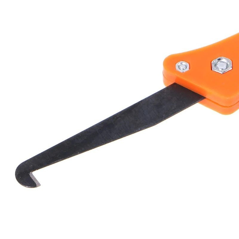 A kütyü éles horogszerű pengével rendelkezik, melynek köszönhetően sokkal hatékonyabb munkát végezhetsz vele, mint egy hagyományos fugatisztító késsel. Strapabíró fém anyagának hála pedig rendkívül hosszú élettartamú.