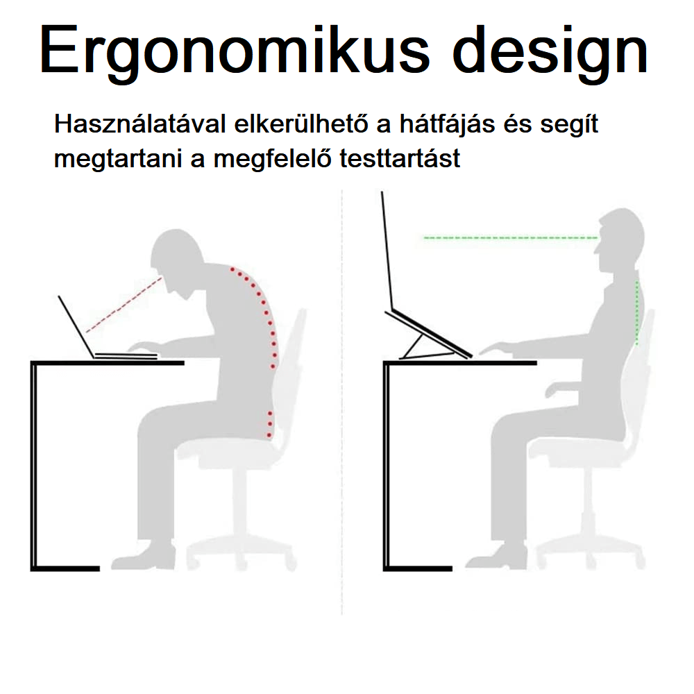 Az ergonomikus tervezésű, 6 fokozatban állítható laptop állvánnyal végre megszabadulhatsz a nyaki gerinc kellemetlenségeitől. Kényelmesen beállíthatod az optimális szöget a szemeknek és a nyaki gerincnek, hogy tökéletesen kényelmes legyen számodra.