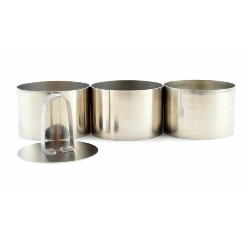 - 3 db egyforma méretű kör alakú forma, 1 db étellapító