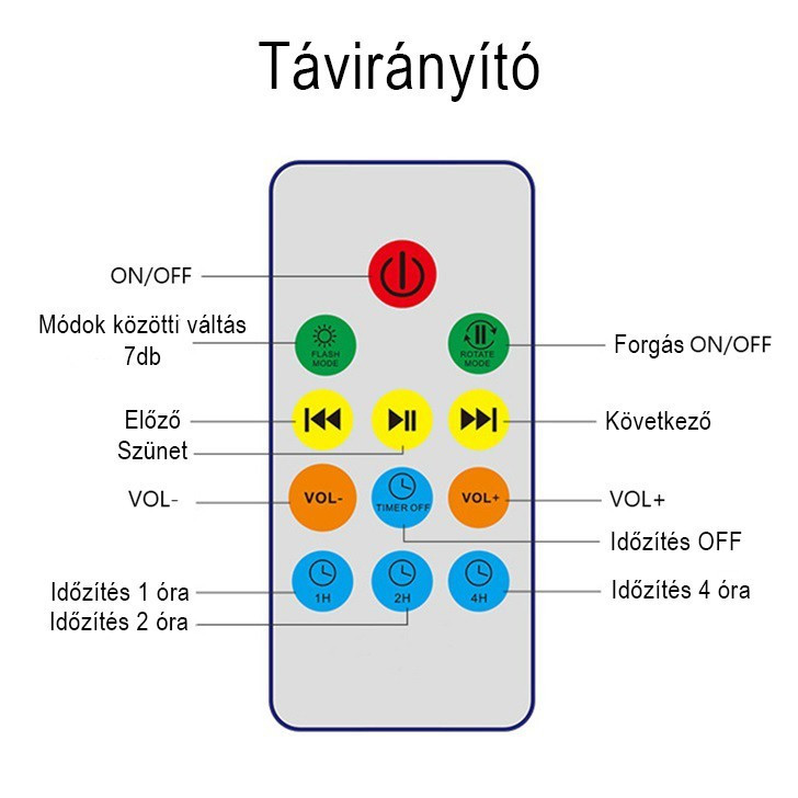 A terméket kezelheted a rajta található érintőgombok vagy a mellékelt távirányító segítségével. Váltogathatod a világítási módokat, szüneteltetheted, ki-/bekapcsolhatod a lámpát, sőt akár még időzítőt is állíthatsz be neki.