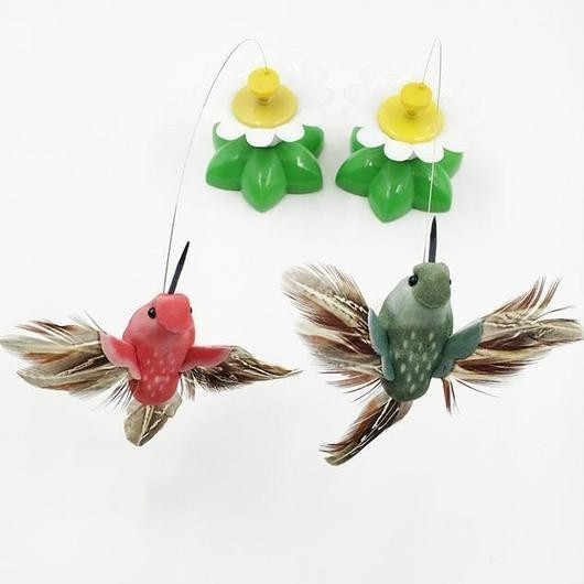 A madárka egy dróttal van a virághoz rögzítve, amit a benne lévő kis motor hajt, ezért körbe-körbe forog. Ez a mozgás biztosan leköti a kis kedvenced figyelmét, és órákon keresztül fog azzal szórakozni, hogy megpróbálja megállítani.