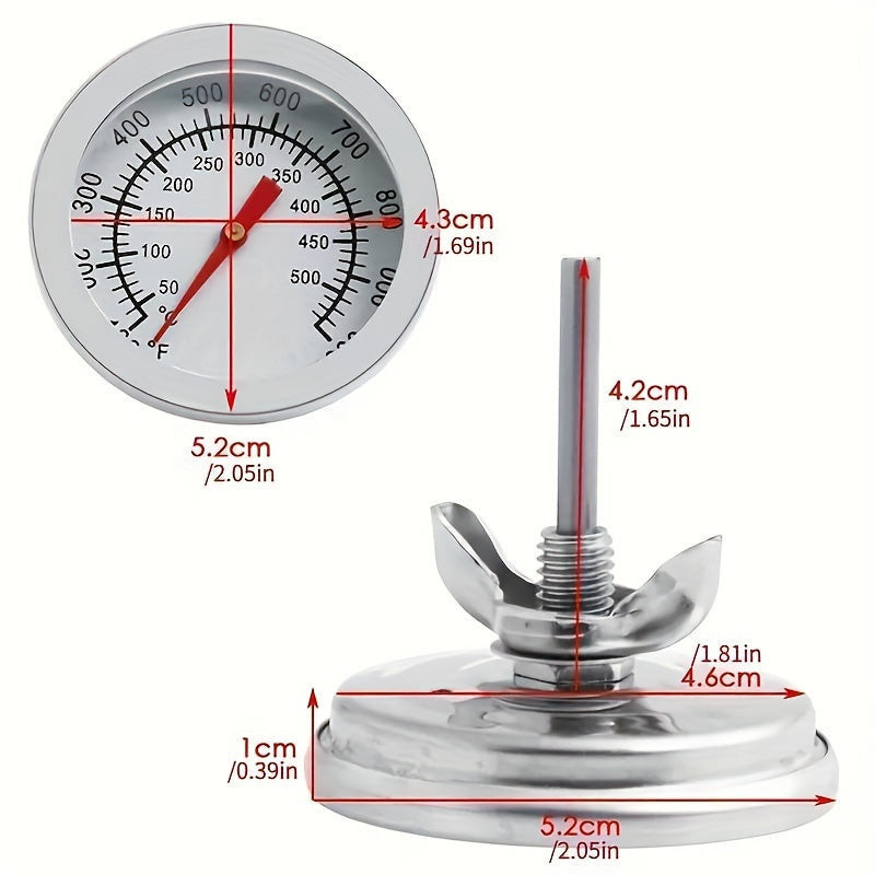 ️ Pontos hőmérés: A rozsdamentes acélból készült BBQ hőmérő pontosan mutatja a grill vagy sütő hőmérsékletét, így könnyedén ellenőrizheted a sülés folyamatát.