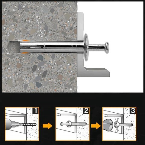 Erős, szénacél anyagból készült szegecsek, amelyeket a falba rakva erősebb és biztosabb tartást adnak mint egy tipli. Átlagos tiplik hamar eltörnek és kiesnek a helyükről, viszont ez a termék a lyukba helyezve szétnyílik, így fixen megmarad a falban, amely nagy teherbírást tesz lehetővé. Anyagából kifolyólag strapabíró és nehezen hajlítható, nagy hő és rozsdásodásálló képességgel rendelkezik. Könnyedén használható: fúrj egy lyukat a kívánt felületbe, helyezd bele a szegecset, majd üsd bele a szeget. Univerzálisan felhasználható, legyen szó beton vagy akár téglafalról.